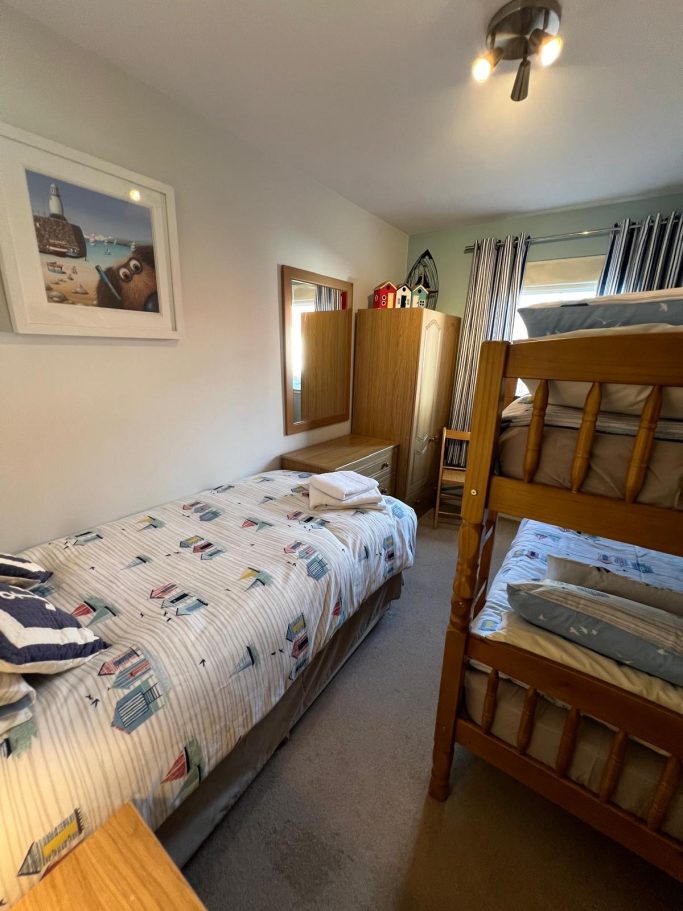The accommodation has been thoughtfully designed with families in mind and offers everything necessary for an enjoyable stay. It comprises three bedrooms: one king-size bed; one double room with ensuite facilities; and one single room featuring one single bed and a standard bunk bed, comfortably accommodating up to 5 adults and 2 children.